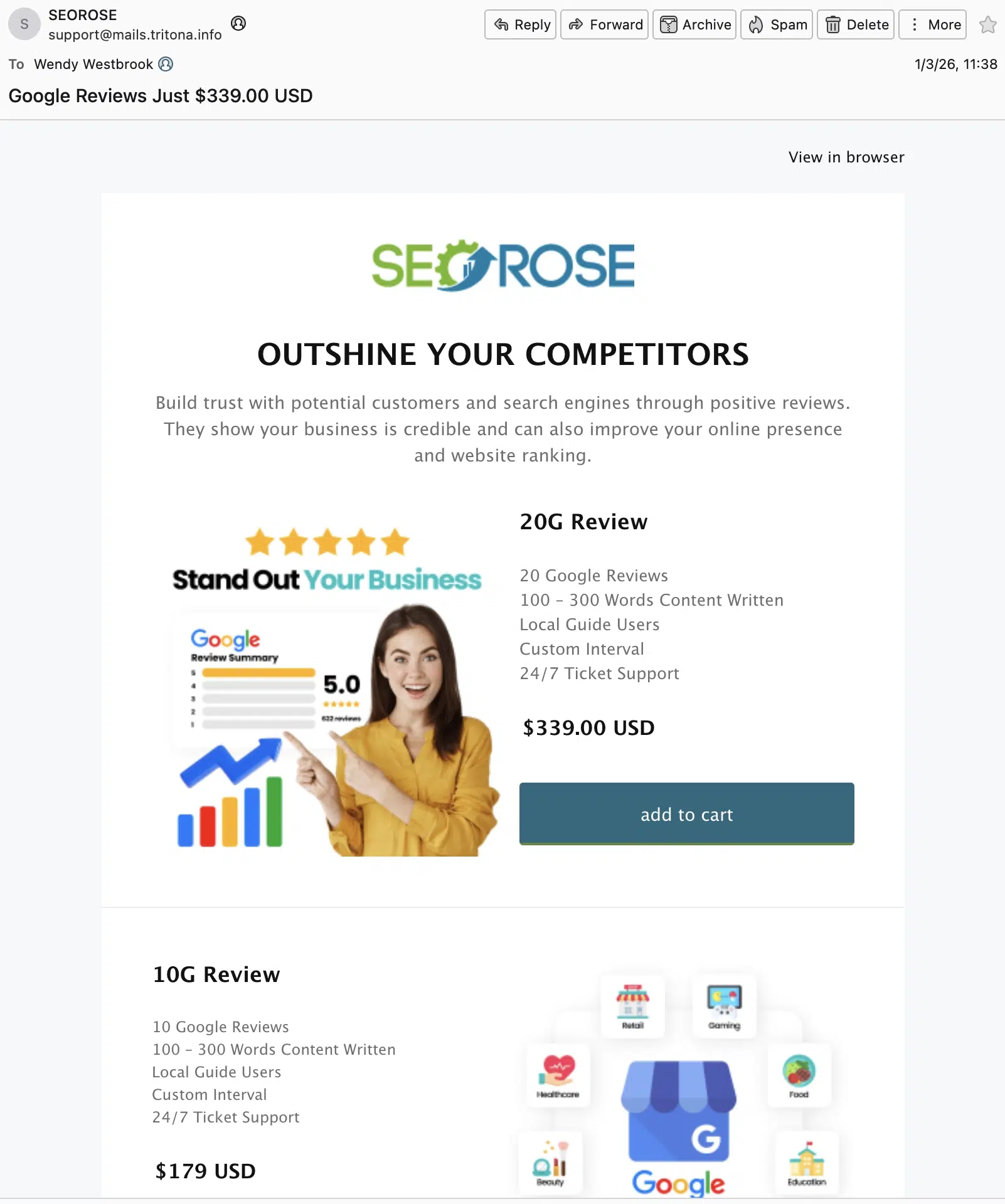 If you’ve been running a business for any amount of time, chances are you’ve received an email offering to sell you Google reviews. These messages often promise quick results, higher star ratings, and improved visibility for a surprisingly low price. Recently, I received one of these emails myself, advertising “20 Google Reviews” for a flat fee, complete with marketing buzzwords and guarantees.